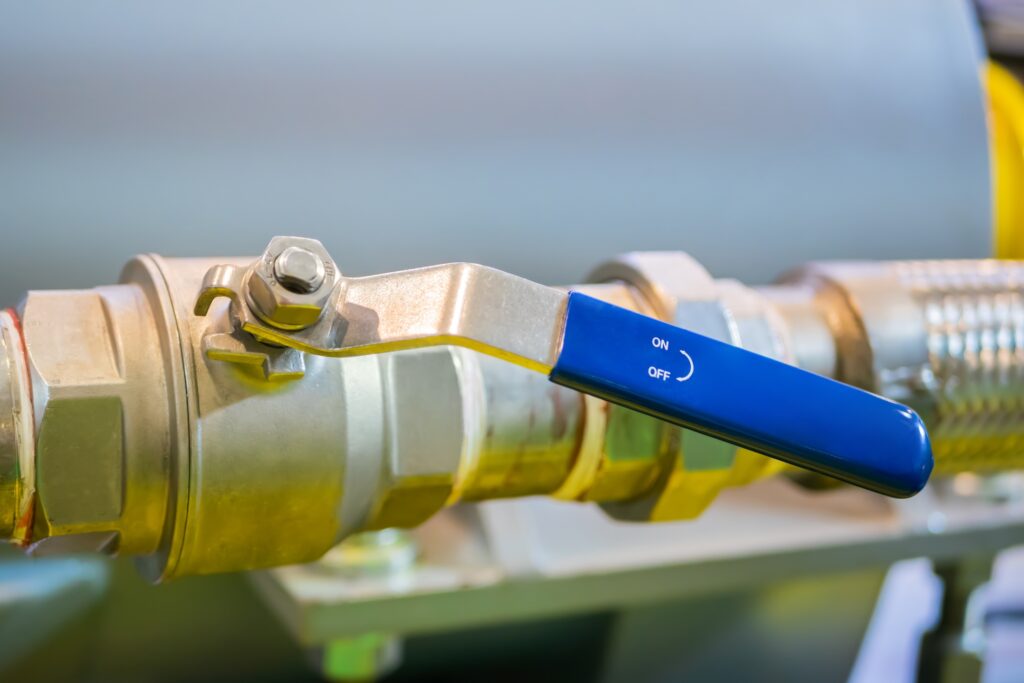 A knife valve, sometimes called a ball valve, is a straight handle that runs parallel to the pipe when open. To turn it off, simply move the handle a quarter turn so that it’s perpendicular to the pipe. The handle will only move in the direction required to open it, and it won’t move any farther than needed.
